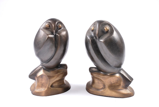 scultura in bronzo moderna composta da due gufi in pezzi singoli