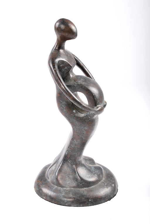 scultura in bronzo stilizzata rappresentante donna in dolce attesa