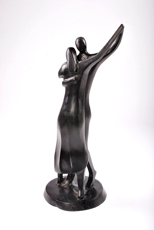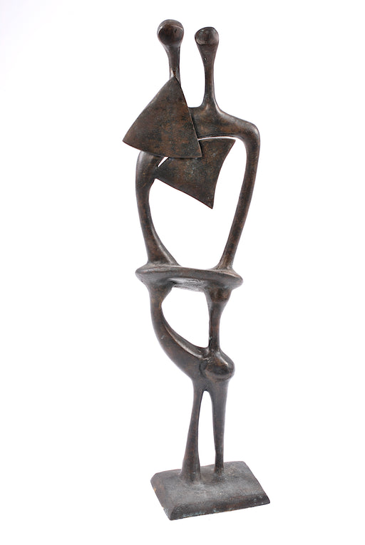 scultura in bronzo astratta raffigurante coppia abbracciata