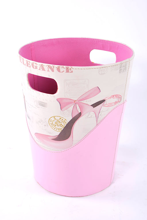 cestino portacarte in ecopelle rosa/beige elegance con disegno scarpa tacco spillo e boccetta profumo