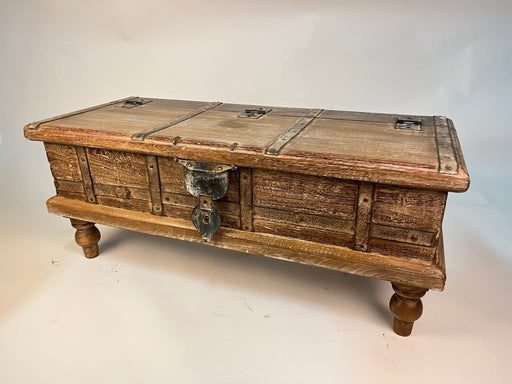 Cassapanca il legno teack con inserti in ferro battuto. Molto robusta e funzionale può essere utilizzata come panca o baule-contenitore. Misure: 13...