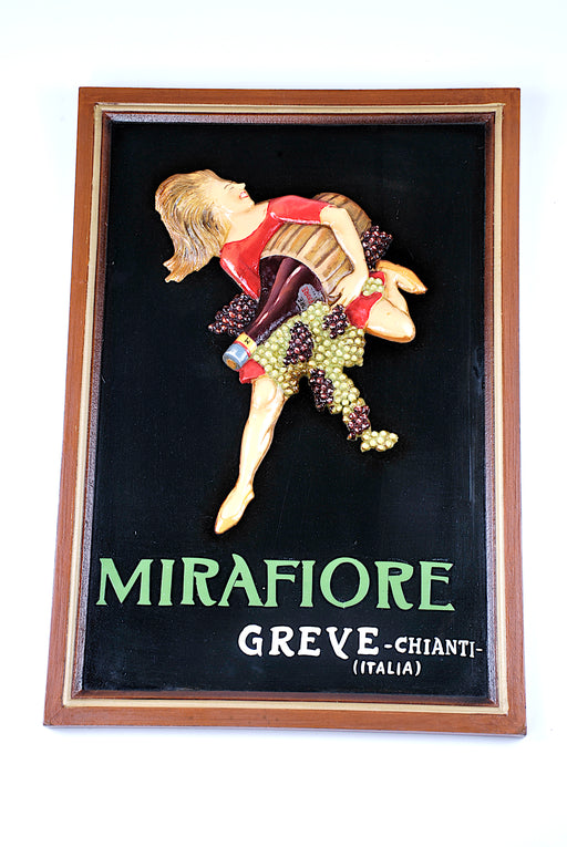 pannello in legno da appendere con soggetto in rilievo scritta mirafiore greve-chianti