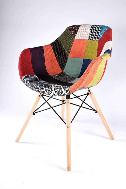 Poltrona dal design moderno con braccioli unica nel suo genere. Tessuto in stile Patchwork di alta qualità. La struttura è realizzata in legno, lo ...