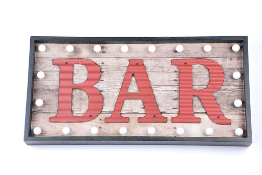 pannello da appendere rettangolare in legno scritta bar con luci a batterie (non incluse)