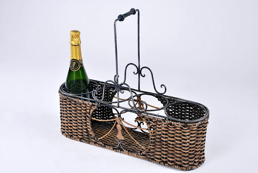 portabottiglie da appoggio in ferro e midollino con manico, ideale per trasportare più bottiglie al tavolo o come semplice oggetto di arredo. Misur...
