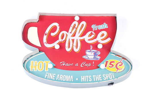 Pannello da appendere in metallo/latta 'coffee' con luci LED a batterie (non incluse)