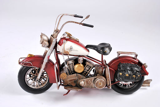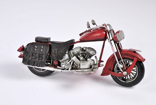 modellino motocicletta in metallo rossa con borse laterali