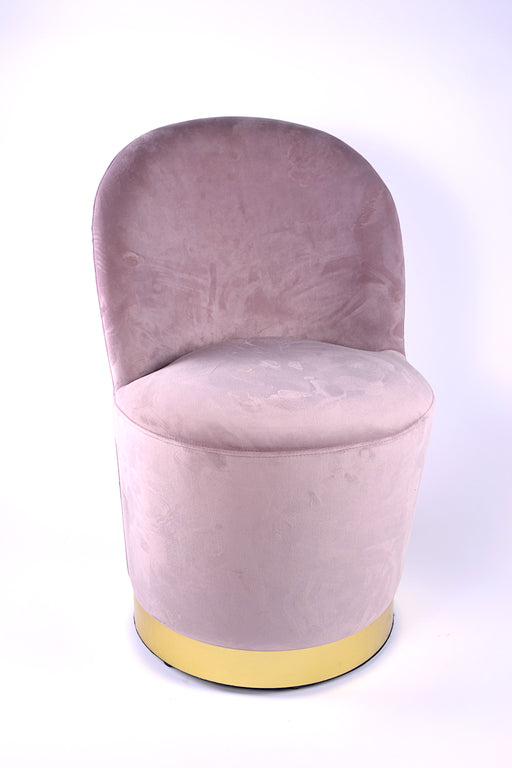 Poltroncina in velluto rosa con base metallo color oro satinato