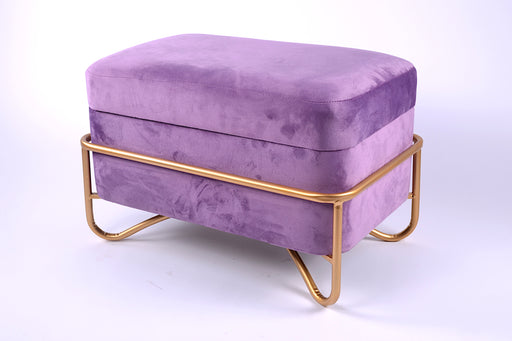 Bauletto contenitore in velluto viola con gambe in metallo Materiale resistente, utilizzabile come poggiapiedi