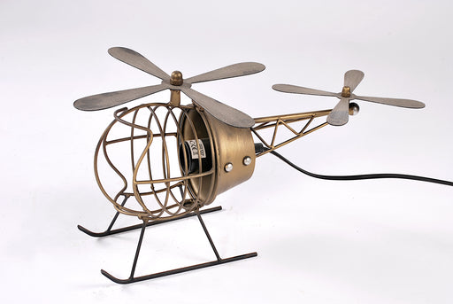 originale lampada da tavolo a forma di elicottero costruita in metallo