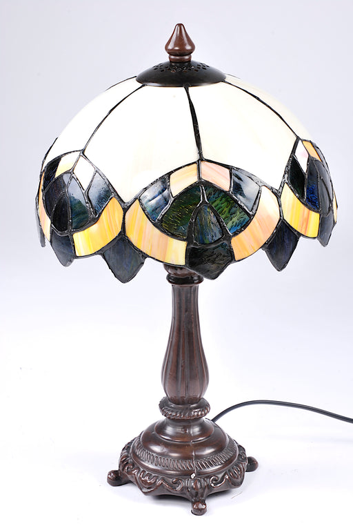 Lampada Tiffany completa composta da base lampada tronco alta 39 cm. in metallo bronzato e vetro Tiffany diametro 24 beige con orlo decorato .