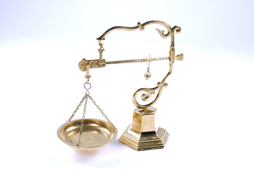 Bilancia fiorentina da tavolo, realizzata in ottone massiccio, un oggetto d'arredo "made in italy" non utilizzabile per calcolare peso. Misure 26cm...