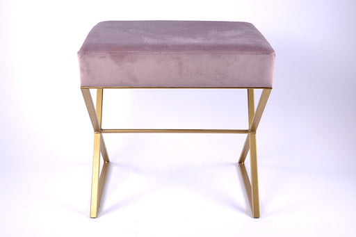 Sgabello in velluto rosa con gambe in metallo color oro satinato